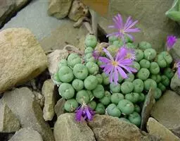 群碧玉(学名:Conophytum minutum var. pearsonii (N.E.Br.) Boom)是番杏科肉锥花属植物,多肉植物,植株群生,具极端内质的对生叶,叶绿色,无花纹,顶面平坦每年的秋季从浅缝中开出紫红色花朵,花朵通常在阳光充足的白天开放,榜晚闭合,如此昼开夜闭,单花能开放5-7天,如果栽培环境光照不足或阴天则不能开放。