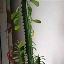 霸王鞭,是大戟科大戟属的多年生肉质灌木,全株含白色乳汁;茎直立,茎基部圆柱形,上部4~5纵棱,…
