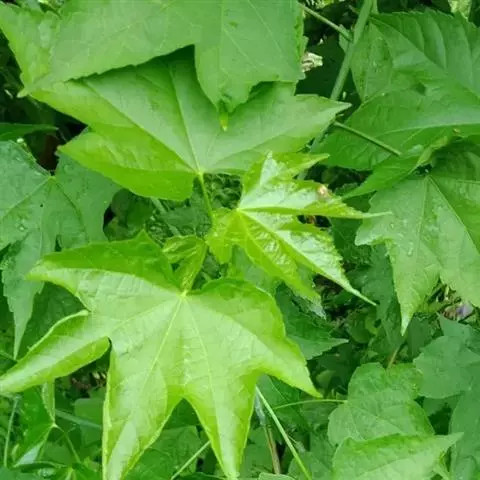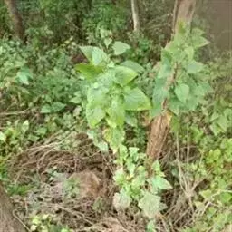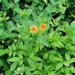飞机草(学名:Eupatorium odoratum L.):是多年生草本植物,根茎粗壮,横走。茎直立,高1-3米,苍白色,有细条纹;分枝粗壮,常对生,叶对生,卵形、三角形或卵状三角形,花序下部的叶小,常全缘。头状花序多数或少数在茎顶或枝端排成复伞房状或伞房花序,总苞圆柱形,总苞片3-4层,覆瓦状排列,外层苞片卵形,麦杆黄色。花白色或粉红色。瘦果黑褐色,5棱,花果期4-12月。