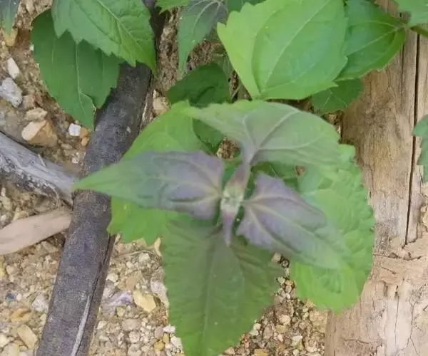 从外形上看,紫茎泽兰的茎呈暗紫色、毛被暗紫,触之有黏手感,异味明显;而飞机草的茎呈绿色、毛被白色。紫茎泽兰的叶子呈菱形,厚纸质;叶柄紫褐色,较长,而飞机草的叶片呈三角形,薄纸质,两面都有灰白色绒毛;叶柄绿色,较短。紫茎泽兰的头状花序呈白色且近圆球形,而飞机草的头状花序呈淡绿黄色、绿白色或略淡紫色且为长圆柱形。