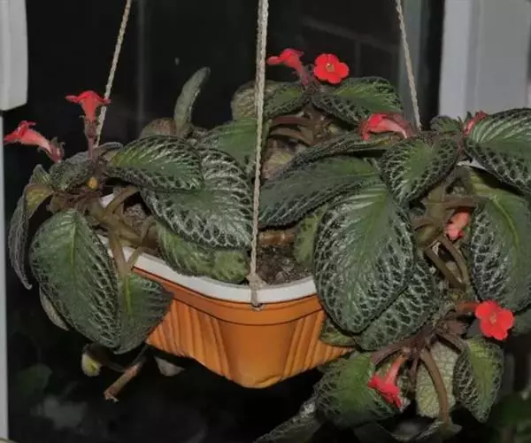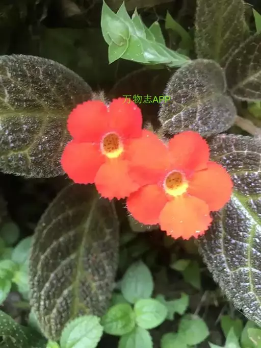 学名Episcia cupreata。“cupreata”l拉丁文,为“铜色的”。原产巴西、哥伦比亚 。同属植物8种。多年生常绿草本植物。喜荫花植株矮,高仅十几厘米,多具匍匐性,分枝多。叶对生,呈椭圆形,深绿色或棕褐色,边缘有锯齿,基部心形;叶面多皱并密生茸毛,银白色的中脉从基部至尖端,中脉及支脉两侧呈淡灰绿色,叶背浅绿色,或淡红色。自茎基部叶腋间长出匍匐茎,并沿土面向外伸展;茎顶端长出小植株。花单生或呈小簇生于叶腋间,亮红色,花期春季至秋季。果期秋季。