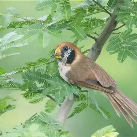 文须雀,别称髭雀、文须山雀,属雀形目、鹆鸟科、画眉亚科。眼先及髭纹黑色,头顶暗灰,…