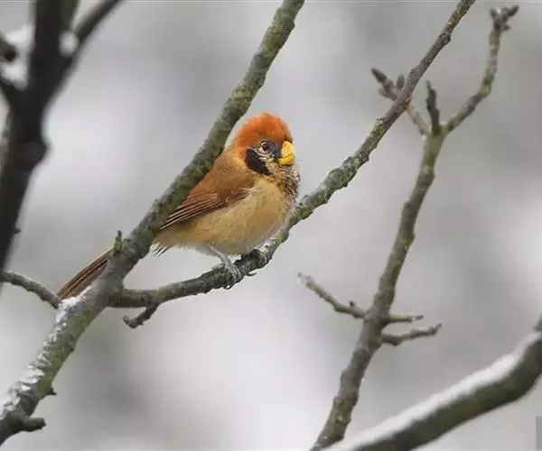 白眶鸦雀是莺科、鸦雀属小型鸟类,体长12-14厘米。嘴黄色、短而粗厚,头顶至后颈褐色沾棕具白色眼圈,…