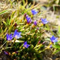 花细小,单生于枝顶或分枝的叶腋上,成带叶的总状花序;花梗极短,仅长约1毫米,顶部有苞片;花萼长4.5-6毫米,在纵棱上疏被硬毛;花瓣6,等大,倒卵状披针形,长约2毫米,蓝紫色或紫色;雄蕊n或9,排成2轮,花丝基部有柔毛;子房矩圆形,花柱无毛,不突出,胚珠4-8。