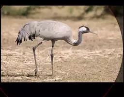 蓑羽鹤大型涉禽,体长68~92厘米,是鹤类中个体最小者。通体蓝灰色,眼先、头侧、喉和前颈黑色,…