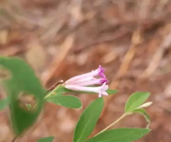 总状花序顶生,有(8-)-12花;花细瘦,黄带紫色或淡红色,花萼外面被白色柔毛,长0.9-1.1厘米,顶端4裂,裂片先端微钝;雄蕊8,2列,上列4枚在花萼筒喉部着生,下列4枚在花萼筒中部着生;子房具柄,顶端密被柔毛;花柱短,柱头球形,顶基压扁,花盘鳞片1-2枚,线状长圆形或长方形,顶端啮蚀状。果干燥,卵圆形,基部为宿存花萼所包被。4-8月开花,随即结果。