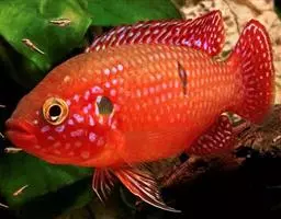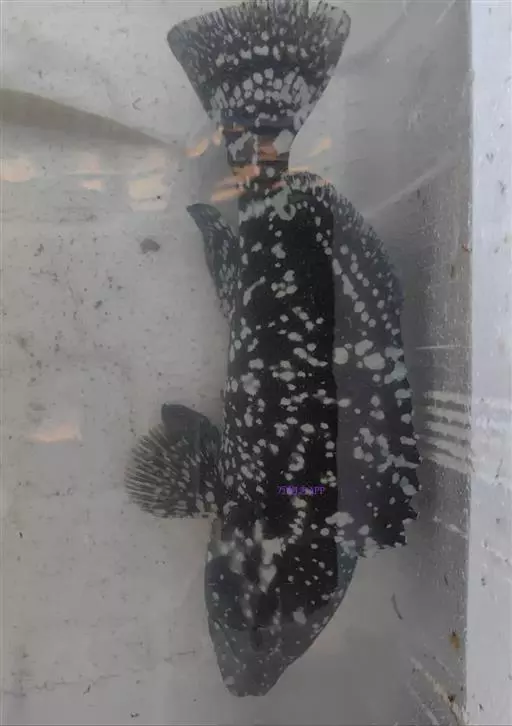 全身斑点状 体长椭圆形,侧扁而粗壮,标准体长为体高之3.0-3.6倍,头背部斜直;眶间区微凸。眼小,短于吻长。口大,鱼头部、体侧及各鳍均散布着很多青黑色斑点;上下颌前端具小犬齿或无,两侧齿细尖,下颌约2-5列。前鳃盖骨后缘微具锯齿,下缘光滑。体被细小栉鳞;背鳍鳍棘部与软条部相连。体长一般为100厘米左右,最长达200厘米,重达200千克。腹鳍腹位,末端延伸不及肛门开口;胸鳍圆形,中央之鳍条长于上下方之鳍条,且长于腹鳍,但短于后眼眶长;尾鳍圆形。体侧及头部呈淡灰绿色或褐色,散布者暗橘红色或深褐色的圆形深色斑点,斑点中央色泽较周围深;体侧另有一大型的暗色斑块位于背鳍最后四根硬棘之基部上;有些鱼会有5条暗色垂直斑纹。