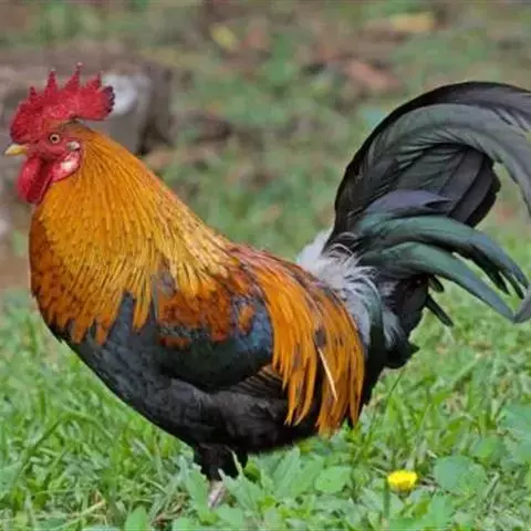 贵妃鸡成年公鸡“三冠”特征十分明显,头顶的V型冠体外加下巴两侧硕大鲜红的肉坠,合称“三冠”。