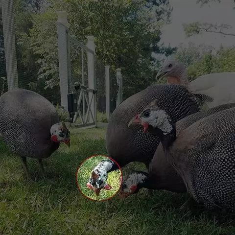 性情活泼,动作灵敏,一旦受惊即可起飞,善于低飞。因此,贵妇鸡的禽舍要设运动场,并设围网和顶网。