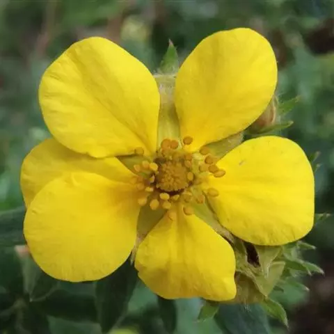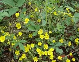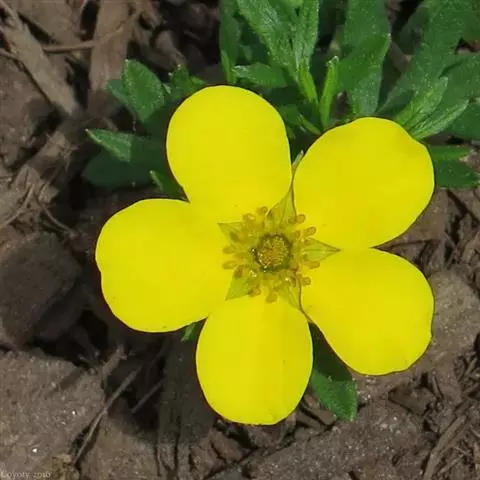 多年生草本,高10-13厘米,具肥厚木质根状茎,茎单生或丛生,直立或斜展,密被白色长柔毛。茎生叶有长叶柄,叶片心状圆形,长2-3厘米,宽3-7厘米,基部深心形,顶端有7-9浅裂片,边缘有细锯齿,两面均被稀疏柔毛,沿叶脉较密;叶柄长3-10厘米,密被开展长柔毛;托叶膜质,棕褐色,外被长柔毛;茎生叶小形,叶柄短或近于无柄;托叶边缘有锯齿,基部合生,外被长柔毛。伞房状聚伞花序较紧密;花直径3-4厘米,黄绿色;花梗长2-3厘米,无毛或近于无毛;萼筒外被稀疏柔毛;副萼片长圆披针形,外被稀疏柔毛;萼片三角卵形,长1-1.5毫米,较副萼片稍长而宽,外被稀疏柔毛;雄蕊长约萼片之半;花柱线形,较雄蕊稍长。瘦果卵形,长约1.5毫米,先端稍尖,无毛,全部包在膜质花托内。