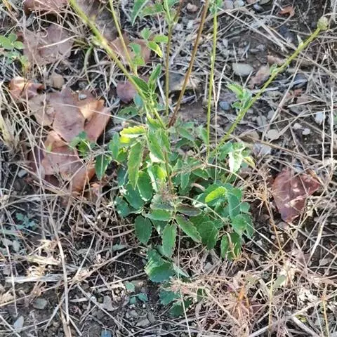 幼枝密被针刺及宽扁大形紫色皮刺,小叶片上面叶脉明显,…
