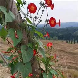 橙红茑萝是旋花科虎掌藤属的一年生草本,又称圆叶茑萝,茎缠绕,平滑,无毛;叶心形,骤尖,全缘,…