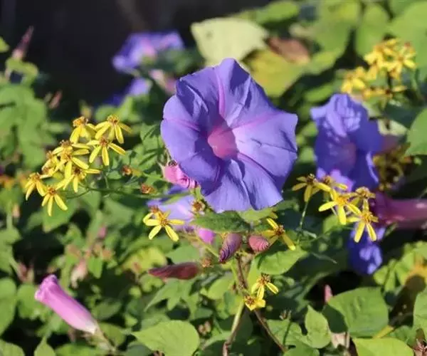 喇叭花花色艳丽,适应性强,栽培容易,在我国南北都有种植, 是城乡庭院最常见观赏植物之一,常用于阳台、窗台、棚架、篱笆绿化。