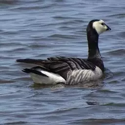 黑雁是雁形目鸭科黑雁属鸟类,又称黑鹅。头、颈、胸、嘴及脚黑褐色;虹膜褐色;背及两翼灰褐色;尾下覆羽白色;胸侧及胁部多近白色纹;颈部两侧各具一个特征性白色横纹,在颈前后断开,未能联成颈环。幼鸟颈部无白斑,而翅上多白色横纹。黑雁繁殖于北美洲、西伯利亚极地的苔原冻土带,越冬于南方沿海的草地及河口。在中国安徽也能见其身影。主要栖息在海湾、海港及河口等地,在冬季里大多出现在有耐碱植物生长的湖泊和水库周围,也出现在周围地势低洼的咸水湖和沿海地区,偶尔还出现在农田地里。性活跃,喜集群,常成群活动和栖息。主要以植物性食物为食。繁殖期在6-8月,雌鸟孵卵,雄鸟通常在距巢100米以内范围内守候警诫。雌鸟孵卵时常将头和颈朝地面平伸出去以降低高度。孵化期为22-28天。黑雁被列入中国林业局2000年8月1日发布的《国家保护的有益的或者有重要经济、科学研究价值的陆生野生动物名