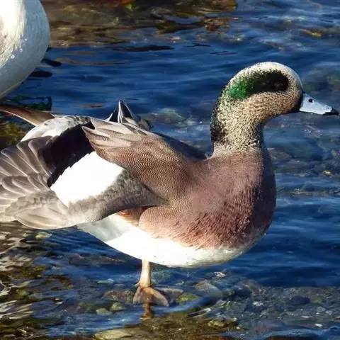 绿翅鸭是小型鸭类,体长37厘米,体重约0.5千克。嘴脚均为黑色。雄鸟头至颈部深栗色,…