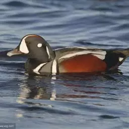 红胸秋沙鸭属中等食鱼鸭类,体长53厘米。嘴细长而带钩,捕食鱼类。丝质冠羽长而尖。雄鸟黑白色,两侧多…