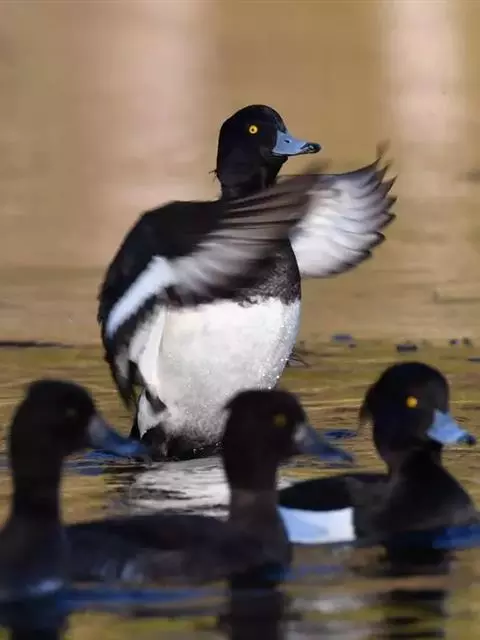斑背潜鸭体长42-47厘米,翼展68-75厘米,体重750-1350克,是中等的体矮型鸭。…
