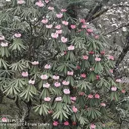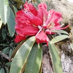 溪畔杜鹃:常绿灌木,高可达3米;幼枝纤细,叶纸质,上面深绿色,下面淡黄褐色,叶脉在上面凹陷,下面凸…