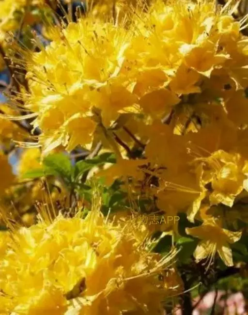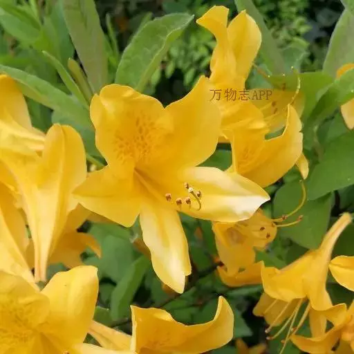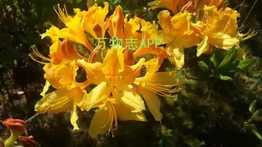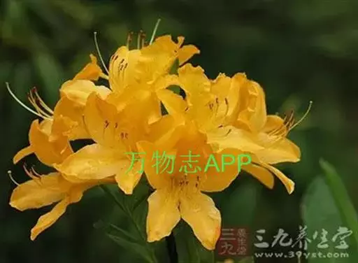 羊踯躅(学名:Rhododendron molle (Blume) G. Don ):落叶灌木,高0.5-2米;分枝稀疏,枝条直立,幼时密被灰白色柔毛及疏刚毛。叶纸质,长圆形至长圆状披针形,幼时上面被微柔毛,下面密被灰白色柔毛。总状伞形花序顶生,花多达13朵,先花后叶或与叶同时开放;花冠阔漏斗形,长4.5厘米,直径5-6厘米,黄色或金黄色,内有深红色斑点,花冠管向基部渐狭,圆筒状,长2.6厘米,外面被微柔毛,裂片5,椭圆形或卵状长圆形。蒴果圆锥状长圆形,具5条纵肋,被微柔毛和疏刚毛。花期3-5月,果期7-8月。