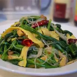 油辣冬笋尖,是一道补气调理、 健脾开胃的湘西山区菜,不可久煮多偏,旺火热油,瞬间即成,质地脆嫩,口…