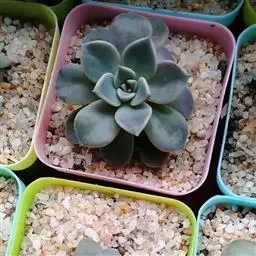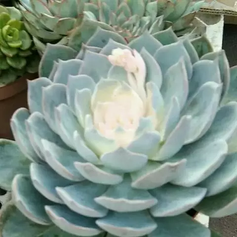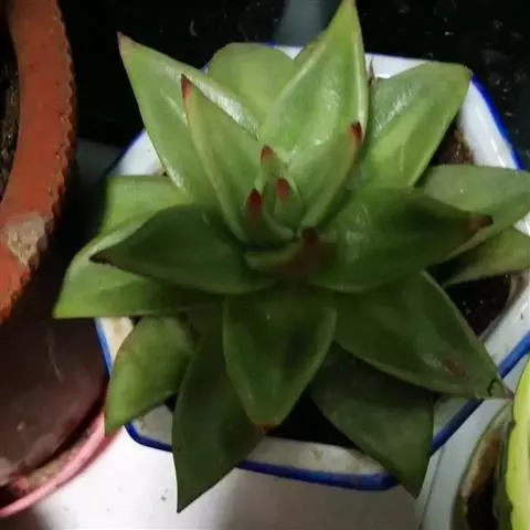 大和锦是景天科拟石莲花属的多肉植物。肉质叶排成紧密的莲座状,广卵形至散三角卵形,背面突起呈龙骨状,…