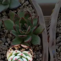 女雏是景天科石莲花属的多肉植物。特征是小巧的株形和橙粉色叶缘。极易生侧芽,…