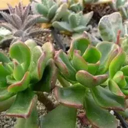 小红衣是景天科、拟石莲花属的一种多肉植物。叶片匙形,扁平细长,叶表具白粉,有明显的半透明边缘,…