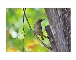 雌鸟上体橄榄绿色。头顶羽毛中央有被遮盖住的暗褐色斑,头侧灰褐色微沾绿色。腰和尾上覆羽染黄色,中央尾羽不延长,浅褐色沾橄榄黄色,外侧尾羽黑色,先端淡褐色,外侧4对尾羽内翎具白色端斑,越往外侧端斑越大。两翅暗褐色,外翈羽缘橄榄黄色。翅上覆羽与背同色。颏、喉、颈侧和上胸淡灰绿色或橄榄灰色,到腹逐渐变为橄榄黄色,到尾下覆羽变为鲜黄色,翅下覆羽白色微沾黄色。