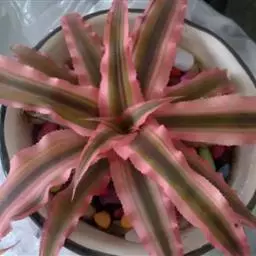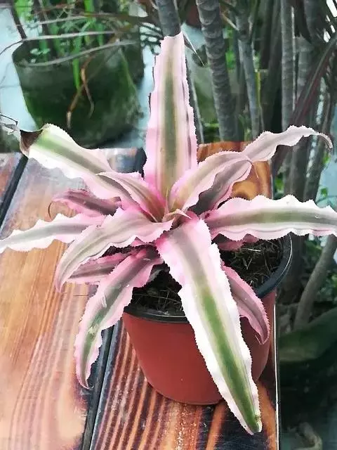 彩叶凤梨 L.B.Sm.) 凤梨科多年生常绿草本。株高25-30厘米,茎短。叶革质,带状,常基生,…