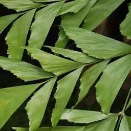 七叶树是落叶乔木,高达25米,树皮深褐色或灰褐色,小枝、圆柱形,黄褐色或灰褐色,无毛或嫩时有微柔毛,有圆形或椭圆形淡黄色的皮孔。冬芽大形,有树脂。掌状复叶,由5-7小组成,叶柄长10-12厘米,有灰色微柔毛;小叶纸质,长圆披针形至长圆倒披针形,稀长椭圆形钾先端短锐尖,基部楔形或阔楔形,边缘有钝尖形的细锯齿,长8-16厘米,宽3-5厘米,上面深绿色,无毛,下面除中肋及侧脉的基部嫩时有疏柔毛外,其余部分无毛;中肋在上面显著,在下面凸起,侧脉13-17对,在上面微显著,在下面显著;中央小叶的小叶柄长1-1.8厘米,两侧的小叶柄长5-10毫米,有灰色微柔毛。