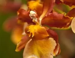 假鳞茎卵球形或其他形状,长2-3厘米,宽0.7-2厘米,密接,具2-3节。叶1枚,生于假鳞茎顶端,线形,长可达40厘米。花葶从假鳞茎侧面发出,长达50厘米,具3-4枚鞘;总状花序长约14厘米,具15-20朵花;花苞片小,长约5毫米;花梗和子房长约9毫米,褐色;花张开,暗褐色,但唇瓣白色,背面黄色,中裂片有红褐色斑;萼片狭长,长8-8.5毫米,宽2-3毫米;花瓣亦狭长,长约8毫米,宽1.5毫米,先端急尖;唇瓣长6.5毫米,向基部渐狭,近中部3裂,无明显的爪;侧裂片狭窄,多少围抱蕊柱,长约5毫米,先端钝;中裂片外弯,长约3.8毫米,宽3.2毫米,先端近截形,边缘波状;唇盘上在两枚侧裂片与中裂片之间有1个黄色的、中央有纵槽的宽阔胼胝体;胼胝体长达2.5毫米,与中裂片基部近等宽;蕊柱长4毫米,圆柱形。花期5-6月。
