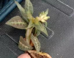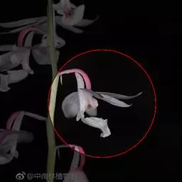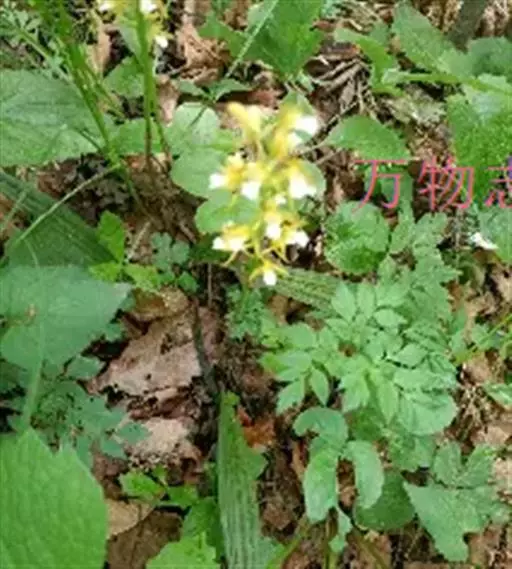 假鳞茎卵球形或长圆形,长1-1.3厘米,直径约1厘米,彼此较密接,具节,多少具撕裂成纤维状的残留鞘。叶2枚,生于假鳞茎顶端,线状披针形或狭披针形,基部收狭成柄,连柄长达17厘米,上部宽5-7毫米。花葶从假鳞茎侧面或近顶端处发出,长20-30厘米,中下部有2-3枚筒状鞘;总状花序长4-6厘米,具8-12朵花;花苞片卵状披针形,长1.5-3毫米;花梗和子房长6-9毫米;花白色;萼片长圆状披针形,长5.5-6毫米,宽1.5-2毫米,先端近急尖;侧萼片略斜歪;花瓣披针形或线状披针形,长5-5.5毫米,宽约1.2毫米,先端短渐尖;唇瓣轮廓近长圆状倒卵形,长约5毫米,近基部3裂,基部有短爪,无囊;侧裂片近线形,长约1.5毫米;中裂片倒卵形或宽倒卵形,边缘有不规则缺刻,略呈皱波状,有时先端有凹缺;唇盘上在两枚侧裂片之间有1枚线形的、中央有纵槽的胼胝体,延伸到中裂片下部;蕊柱长约2.5毫米,略向前弯。蒴果椭圆形,下垂,长1-1.2厘米,宽约5毫米。花期6月,果期不详。