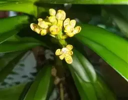 假鳞茎长圆形至椭圆形,长1-2厘米,宽8-10毫米,有节,多少被撕裂成纤维状的鞘。叶1枚,生于假鳞茎顶端,狭椭圆状披针形或狭长圆形,长8-11厘米,宽1.3-2厘米,先端渐尖,基部逐渐收狭成柄;叶柄长1-2厘米。花葶从假鳞茎侧面发出,长12-16厘米,直立,中下部有2-3枚筒状鞘;总状花序长2.5-4厘米,具7-12朵花;花苞片卵状披针形或披针形,长约3毫米;花梗和子房长2-2.5毫米;花蜡黄色;萼片狭长圆状披针形,长6-7毫米,宽1.5-2毫米,先端钝;侧萼片略斜歪;花瓣舌状披针形,长5-6毫米,宽约1.5毫米,略镰曲;唇瓣轮廓为倒卵形,长约5毫米,基部有短爪;从下部2/5处3裂;侧裂片舌状,长不及1毫米,先端钝;中裂片近卵圆形,长约2毫米,边缘稍波状;唇盘基部有2条纵褶片,纵褶片多少合生;蕊柱长约2.5毫米,稍向前弯曲。花期5-7月。