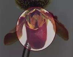 假鳞茎长圆状卵球形至近方形,长达2厘米,宽1厘米。叶1枚,生于假鳞茎顶端,披针形,长可达30厘米,宽约1.7厘米,具明显的脉;叶柄长达10厘米。花葶从假鳞茎侧面发出,长达35厘米,中下部有2枚筒状鞘;总状花序具约20朵花;花苞片披针形,长约5毫米;花梗和子房长约1.2厘米;花大,张开,直径达1.5厘米,棕绿色或黄绿色,但唇瓣淡粉红色至白色并有紫色斑点;中萼片线状披针形,长1.5-1.6厘米,宽约3毫米,先端近急尖;侧萼片宽披针形,长约12毫米,宽3毫米;花瓣长圆状披针形,长约13毫米,宽约3毫米,先端钝;唇瓣长达11.6毫米,3裂,基部有长爪;侧裂片长圆形,长约4.2毫米,宽1.2毫米,稍内弯,先端钝;中裂片卵状椭圆形,长为唇瓣的3/5,宽约6毫米,边缘波状;唇盘上有2条半月形的纵褶片,位于两枚侧裂片之间和中裂片基部上方,长达2.6毫米,高约1毫米;蕊柱长达8.3毫米。花期5-6月。