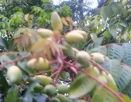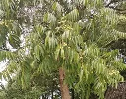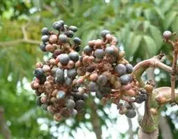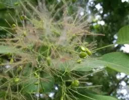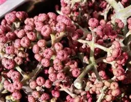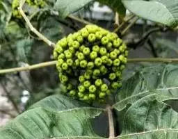 伞房花序着生于小枝顶端,长6厘米,直径约7厘米,总花梗长2-3厘米。花淡黄绿色,杂性,雄花与两性花同株;萼片5,淡黄绿色,长圆形或倒卵状长圆形,长5毫米,宽3毫米;花瓣5,白色;倒披针形,长5毫米,宽1.5毫米;雄蕊8,长3-5毫米,在两性.花中较短;花盘无毛,微凹缺,位于雄蕊外侧;子房紫色,被疏柔毛,花柱上段2裂,柱头反卷。
