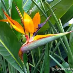 鹤望兰,别名天堂鸟,为鹤望兰科鹤望兰属的一种多年生草本植物;无木质树干;花序生于与叶柄近等长或稍短的花序梗上,佛焰苞1;花较小,萼片橙黄色,长7.5-10厘米,箭头状花瓣基部具耳状裂片,暗蓝色;花期在冬季。该物种原产非洲南部,在中国南方大城市的公园、花圃有栽培,北方则为温室栽培。性喜温暖湿润、阳光充足的气候,适宜生长的温度为25℃左右,耐干旱、较耐寒、不耐水湿,要求疏松肥沃、排水良好,以土层深厚的沙壤土为宜。因花形美丽似鹤,花开时犹如仙鹤翘首远望,花朵寿命亦长,故中文名为鹤望兰。鹤望兰素有“鲜切花之王”的美誉,是一种名贵的观赏花卉,深受广大消费者喜爱。同时,鹤望兰也宜大盆栽植,布置在公园、客厅、会议室、展厅候机室等处。鹤望兰是美国洛杉矶市的官方花卉象征。