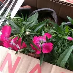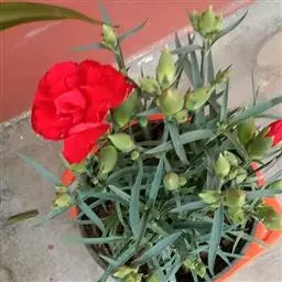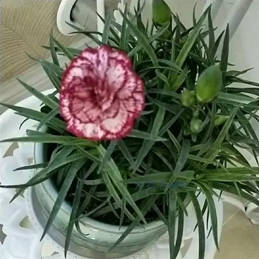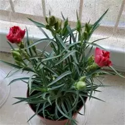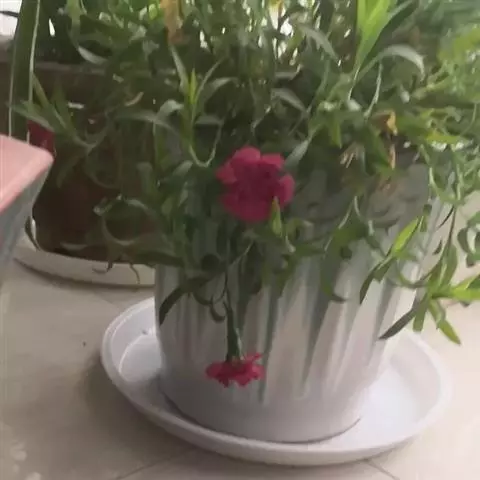 盆栽康乃馨,应选内径较大的高筒盆,盆底先施足含钾、钙、氮、磷的基肥。移植后,晴天每天浇水一次,保持盆土潮润。因为康乃馨既怕水涝,也不耐干旱。