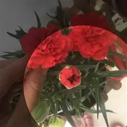 2、开放度小:一手捏住花头底部,另一手用食指侧面轻轻用力拨花头外侧的花瓣,这样花就开大了。不可以用手去拨花心,让康乃馨泡水后慢慢开放即可。