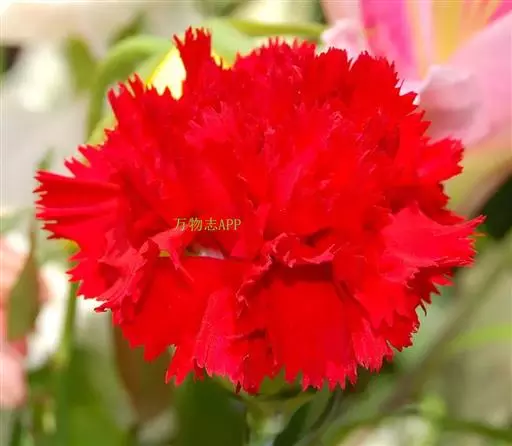 康乃馨,原名:香石竹,又名:狮头石竹、麝香石竹、大花石竹,拉丁文名:Dianthus caryophyllus L. 被子植物门;双子叶植物纲;中央种子目;石竹科;石竹属;香石竹。