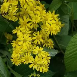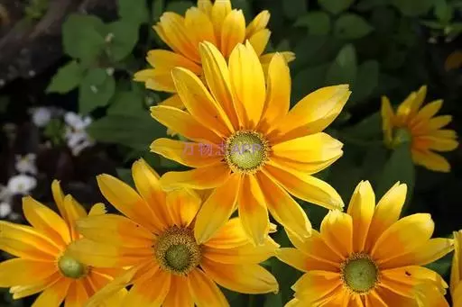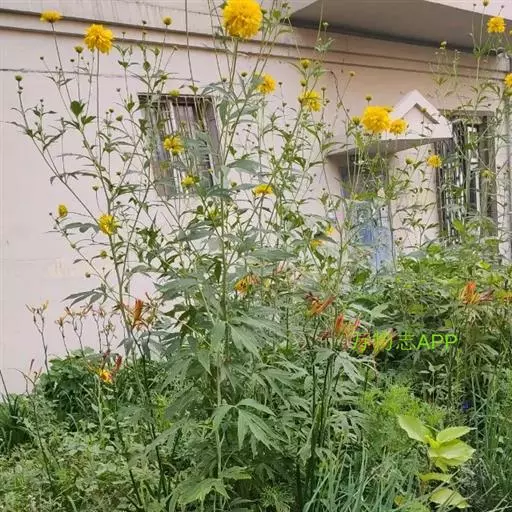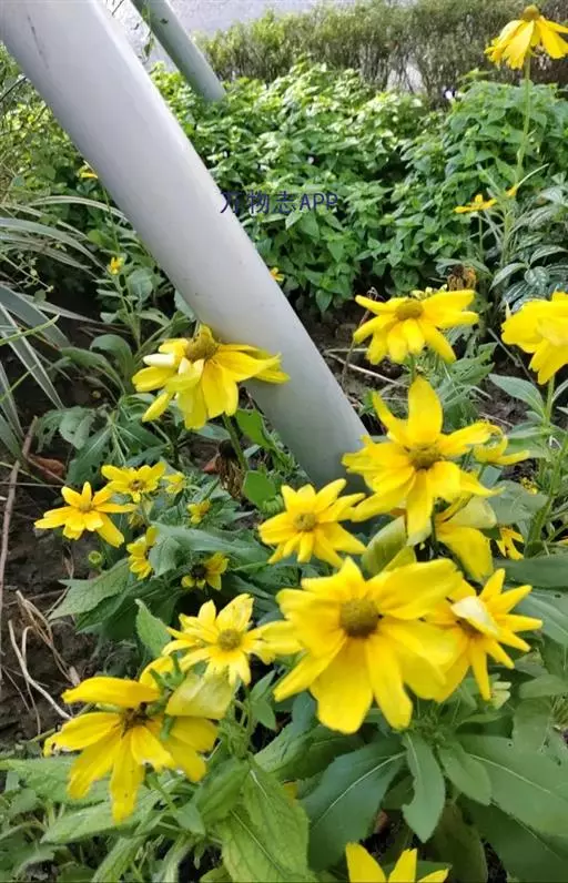 金光菊(学名:Rudbeckia laciniata L.):又名黑眼菊、黄菊、黄菊花、假向日葵等,属桔梗目、菊科多年生草本,茎无毛或稍有短糙毛。叶互生,无毛或被疏短毛。头状花序单生于枝端,具长花序梗。总苞半球形;花托球形;舌状花金黄色;舌片倒披针形;管状花黄色或黄绿色。瘦果无毛,稍有4棱。花期7-10月。