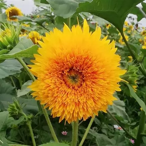 耐寒性宿根草本,高30-90厘米,下部稍有分枝,全株被粗毛。叶互 生,下部叶近匙形,叶柄有翼,上部叶长椭圆形至披针形,全缘,无柄。头状花序单生于茎顶,径约8-10厘米舌状花14枚,金黄色,长2.5-5厘米,茎部色深,管状花从紫黑色变为深褐,花期7-10月。
