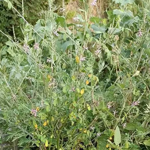 多年生草本,茎直立,粗壮,多分枝,疏展,高50-100厘米。茎、小枝圆柱形,具条棱,髓心白色,幼时稀被白色短柔毛,后变无毛。奇数羽状复叶,具小叶11-17(-25);托叶小,膜质,披针形,长3毫米,分离,无毛;叶柄短,长约5毫米,无毛;小叶薄纸质,椭圆形或长圆形,长15-25毫米,宽4-8毫米,先端具短尖头,基部近圆形,两面无毛;侧脉每边4-5条,可见,小脉不明显;小托叶小;小叶柄长约1毫米,无毛。