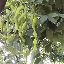 荚果细长圆柱形,稍扁,具4棱,先端有宿存的喙状花柱,荚节长约1.5厘米,各荚节有种子1颗;种子长圆状倒卵形,光滑,黄褐色,长约3毫米,宽约1毫米,种脐长0.7毫米。花期6-7月,果期8-9月。