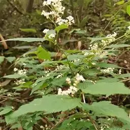 花多数,杂性,雄花与两性花同株,多数常成无毛的顶生圆锥状伞房花序,长与宽均约4厘米,生于有叶的枝上,花序的总花梗长l-2厘米,花的开放与叶的生长同时;萼片5,黄绿色,长圆形,顶端钝. 形,长2-3毫米;花瓣5,淡白色,椭圆形或椭圆倒卵形,长约3毫米;雄蕊8,无毛,比花瓣短,位于花盘内侧的边缘,花药黄色,椭圆形;子房无毛或近于无毛,在雄花中不发育,花,柱无毛,很短,柱头2裂,反卷;花梗长1厘米,细瘦,无毛。