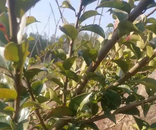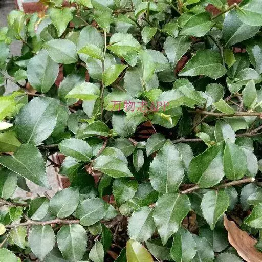 柞木 (原变种),常绿大灌木或小乔木,高4-15米;树皮棕灰色,不规则从下面向上反卷呈小片,裂片向上反卷;幼时有枝刺,结果株无刺;枝条近无毛或有疏短毛。叶薄革质,雌雄株稍有区别,通常雌株的叶有变化,菱状椭圆形至卵状椭圆形,长4-8厘米,宽2.53.5厘米,先端渐尖,基部楔形或圆形,边缘有锯齿,两面无毛或在近基部中脉有污毛;叶柄短,长约2毫米,有短毛。