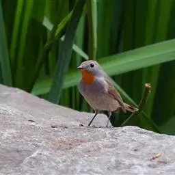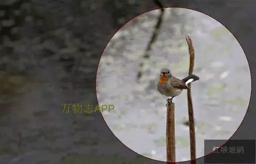 雌鸟颏、喉不为橙红色而为白色或污白色,胸沾棕黄褐色,其余似雄鸟。