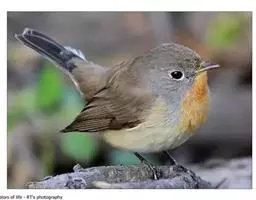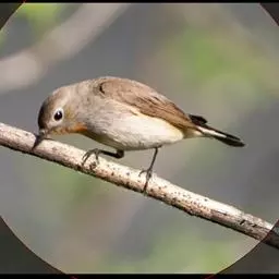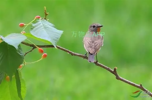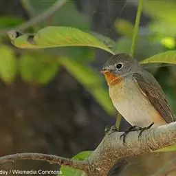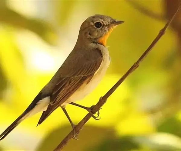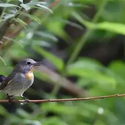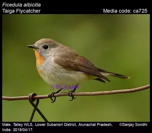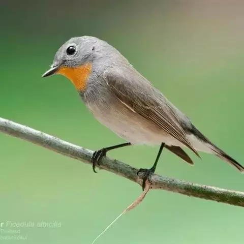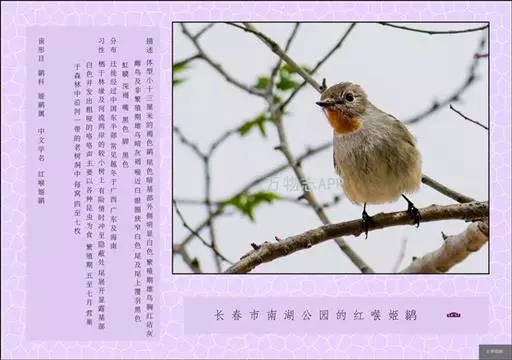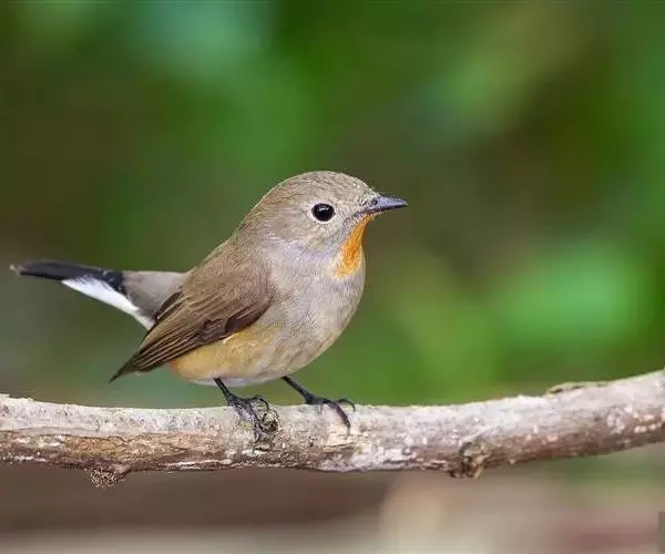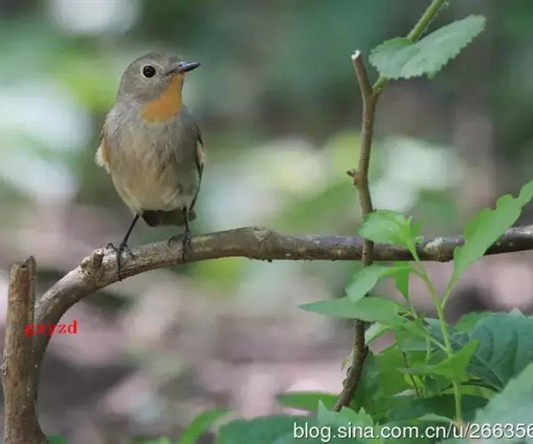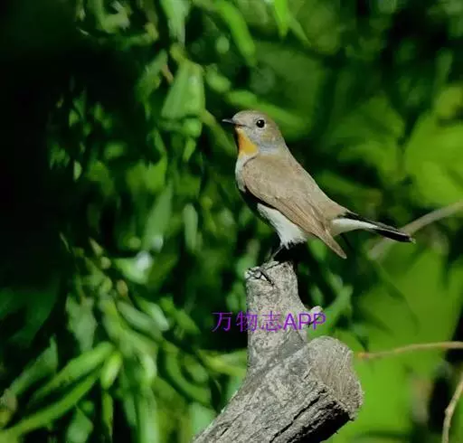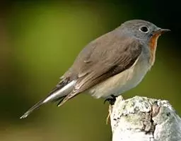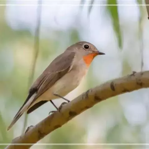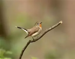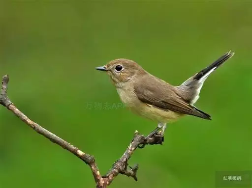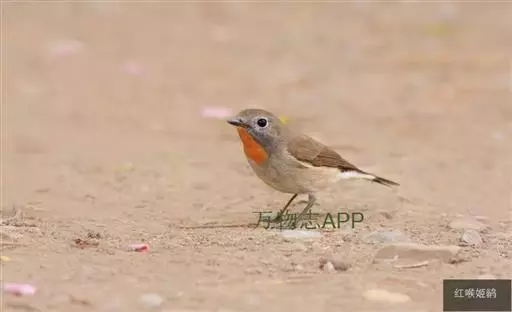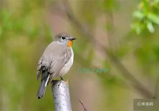 红喉姬鹟(学名:Ficedula parva)小型鸟类,体长11~13厘米。雄鸟上体灰黄褐色,眼先、眼周白色,尾上覆羽和中央尾羽黑褐色,外侧尾羽褐色,基部白色。颏、喉繁殖期间橙红色,胸淡灰色,其余下体白色,非繁殖期颏、喉变为白色。雌鸟颏、喉白色,胸沾棕,其余同雄鸟。