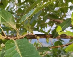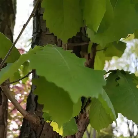 落叶乔木,高达25米。树皮暗灰褐色,略平滑。小枝褐色,无毛。冬芽长卵形,长3-5毫米,无毛,芽鳞暗褐色,多数,覆瓦状排列。叶片卵形或椭圆形,长10-20厘米,宽7-10厘米,顶端渐尖,基部楔形,叶缘每边5-7羽状深裂,裂片具细裂齿,叶面深绿色,叶背淡绿色,无毛或脉腋有簇毛;叶柄长2.5-5厘米,老时无毛。