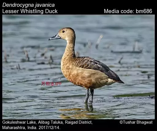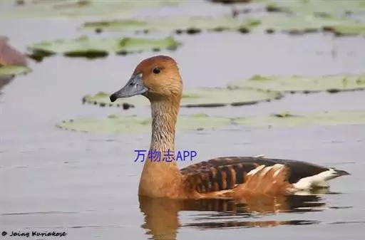 栗树鸭(学名:Dendrocygna javanica)体长37-42厘米,体重400-600克,是中等体型的红褐色鸭。头顶深褐,头及颈皮黄色,背褐而具棕色扇贝形纹,下体红褐。左右翅各有1枚形状特殊的飞羽,飞行中与空气摩擦能发出轻而尖的啸声。嘴形广平;秃颈;长腿,跗骨前缘被以网状鳞;后趾仅具狭形瓣蹼;后趾(连爪)的长度为其宽度(连同瓣蹼)的3.5-4倍。两性羽色均鲜艳。栖息于丘陵谷间小盆地或面积不大而浅水的水域以及水库中潮湿多草的小岛上。结小群活动于湖泊、沼泽、红树林及稻田。属半夜行性。飞行力弱,潜水能力强。以植物种子及嫩茎叶为主食。分布于亚热带地区,主要是巴基斯坦、中国、斯里兰卡、印度、孟加拉国、缅甸、泰国、中南半岛、琉球群岛、印度尼西亚,一直到印度洋中的岛屿,如安达曼群岛,尼科巴群岛等。