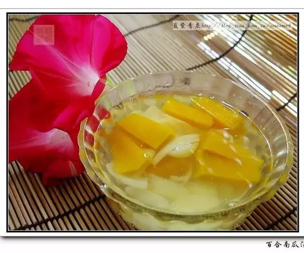 南瓜含有丰富的矿物质,以及人体必需的8种氨基酸和儿童必需的组氨酸,还有可溶性纤维、叶黄素、磷、钾、钙、镁、锌、硅等微量元素。百合主要含生物素、秋水仙碱和营养物质,有良好的营养滋补功效。